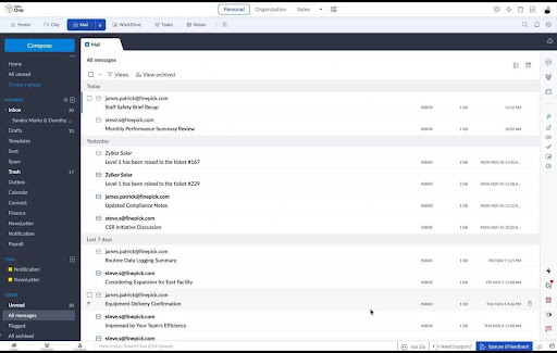 · Inteligencia integrada y contextual. La función Ask Zia, accesible desde la barra inferior, permite realizar consultas rápidas que combinan datos de múltiples apps para mostrar una visión completa del trabajo pendiente, calendario, tareas o decisiones recientes. Al estar presente en todo el ecosistema, puede ofrecer recomendaciones altamente contextualizadas que facilitan la toma de decisiones.
